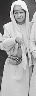 الفتى الذي يضع يده اليمنى على الخنجر او الجنبية التي يتمنطقها ، يشير مظهره والوضع الذي يقف فيه أمام الصورة ، إلى أنه من بيت عزيز، نشأ على الفخر، والاعتداد، والمرجلة، وأنه يثق تماما من أنه أحد كبراء القوم رغم صغر سنه. حالة من الزهو التاريخي يمثلها المشهد كاملا وخصوصا تفاصيل الفتى. من المؤكد أنه كان قائد المجموعة. ويتضح جليا مدى الذهانة والذكاء في عينيه النابهتين، وفي كيفية وقوفه الذي ينبئ عن جسارة في نفسه تجعله مختلفا عن الآخرين. ومختلف عن قرنائه في الصورة على الأقل.