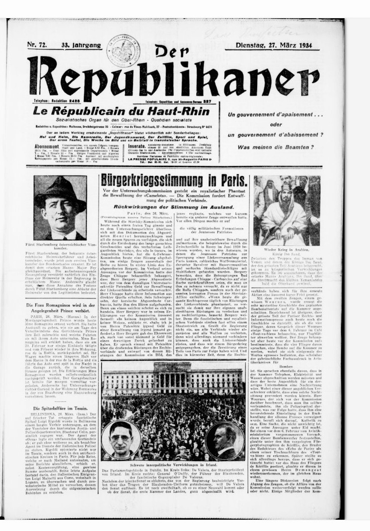 في خضم تلك الأحداث، نشرت صحيفة Der Republikaner (الريبوبليكانر) الألمانية عددها الصادر في 27 مارس 1934، متضمّنًا خبرًا بارزًا في صدر صفحتها الأولى بعنوان: